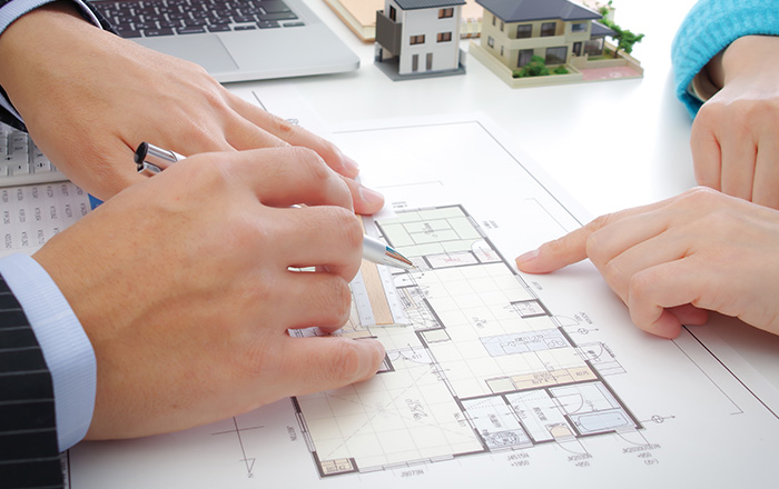 建築士に依頼して、増築部分の設計図面を作成します。平面図、立面図、配置図、構造図などが必要になります。