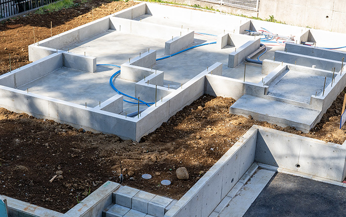 建築基準法では、基礎の立ち上がり部分は4cm以上、底盤部分は6cm以上のかぶり厚さが義務付けられています。